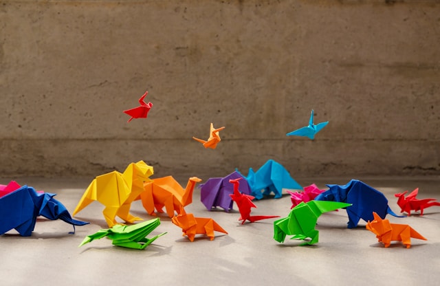 Learning by doing is facilitated by meta learning strategies afterward. Photo of person making origami shapes.